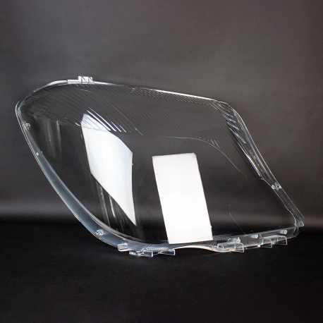 Пластикове скло фари для автомобіля Mercedes Benz Sprinter W906 (2013-2019) рестайлінг. Скло виготовлене з оптичного полікарбонату, поверхня (зовнішня та внутрішня) якого покрита захисним шаром лаку, що захищає скло від ультрафіолетового випромінювання. Скло призначене для ремонту оригінальної оптики автомобіля шляхом заміни пошкодженого елемента фари. Для заміни скла використовують спеціальний герметик.